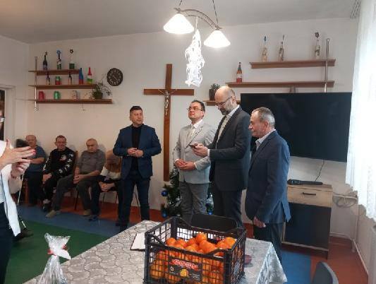 Nasi goście złożyli mieszkańcom i pracownikom serdeczne życzenia z okazji zbliżających się Świąt Bożego Narodzenia oraz podzielili się z mieszkańcami i pracownikami opłatkiem. Były to bardzo ciepłe, pełna życzliwości chwilę, które na długo pozostaną w naszej pamięci.